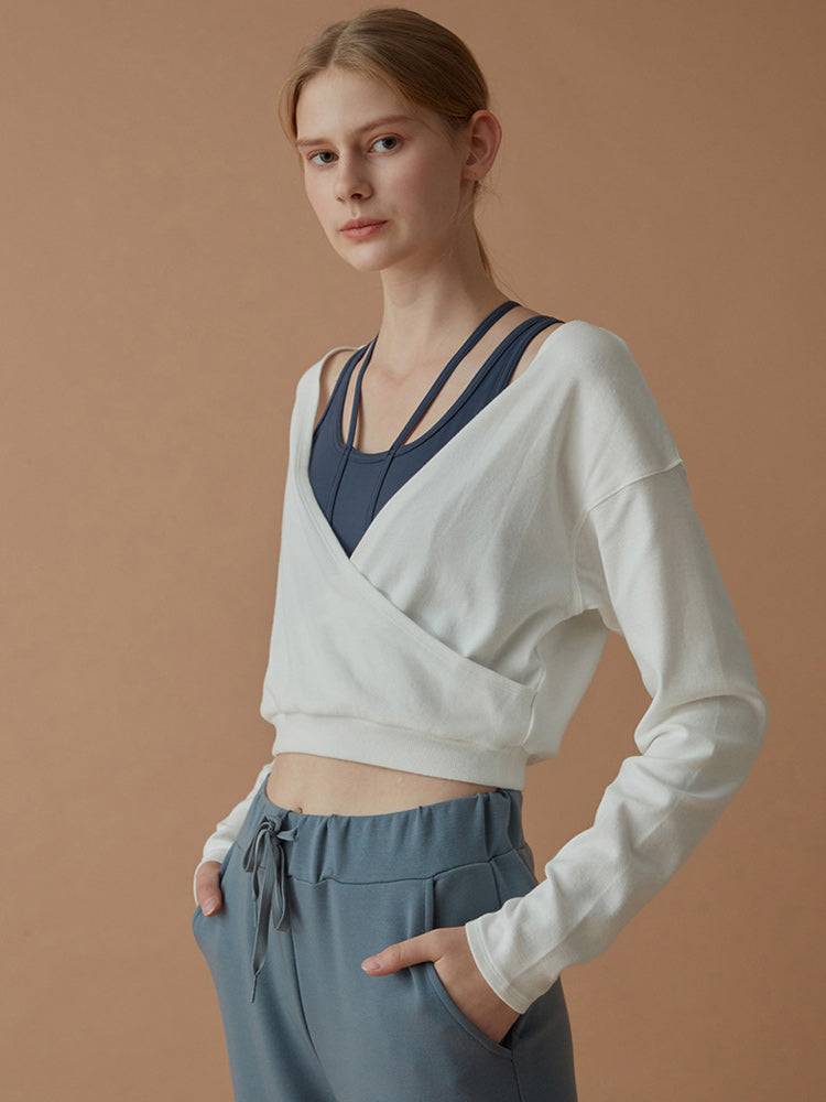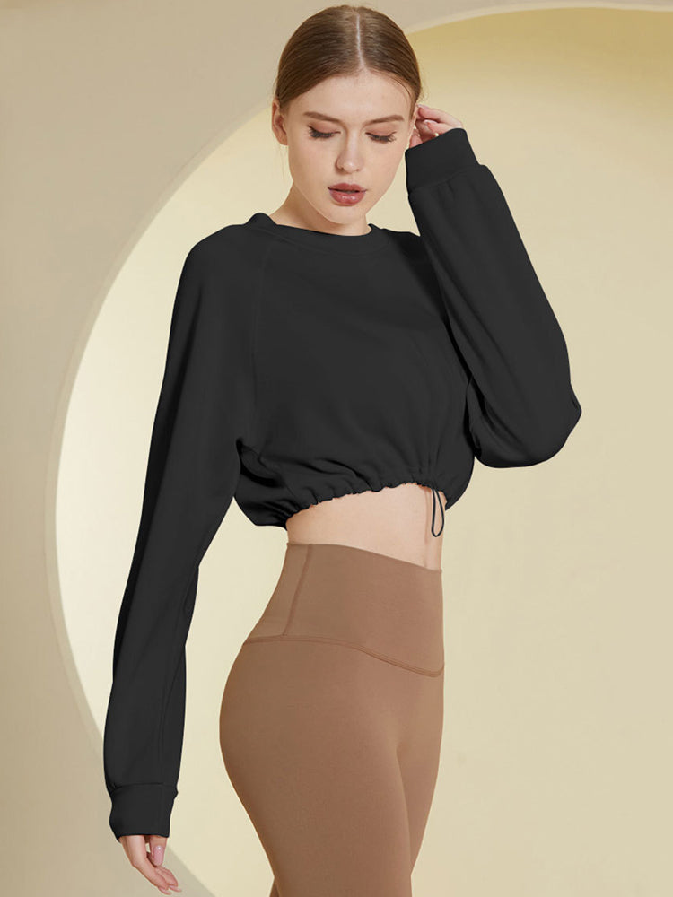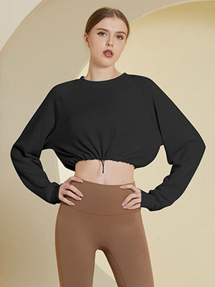 裾ドローストリング ショート丈 長袖シャツ