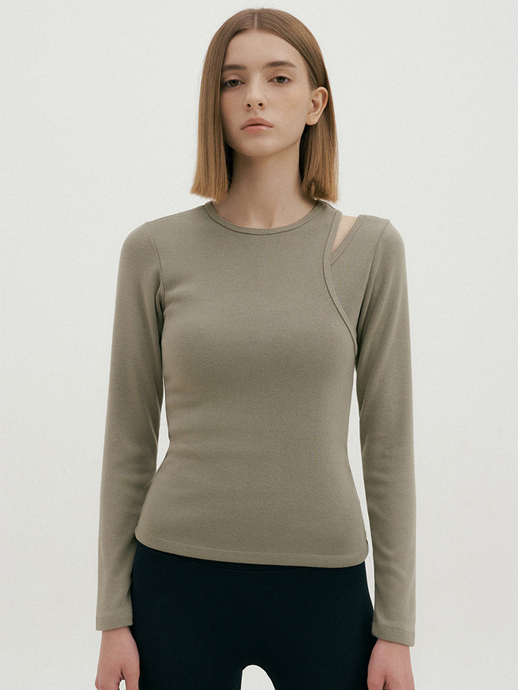 肩カットアウト インナー長袖シャツ
