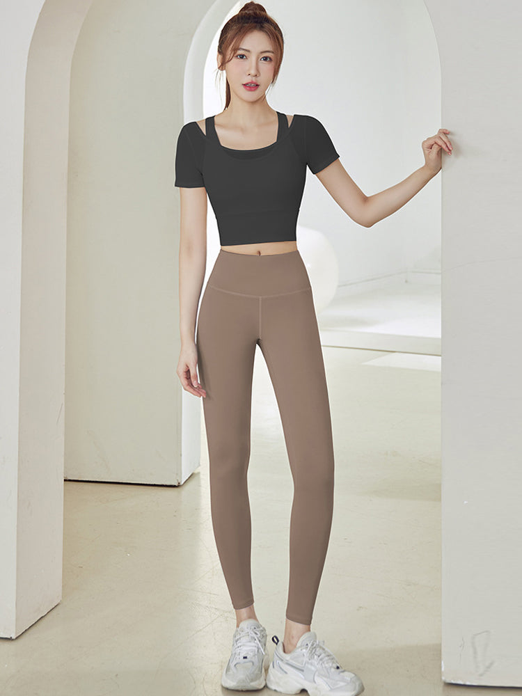 オフショルダーレイヤード半袖 ヨガトップス