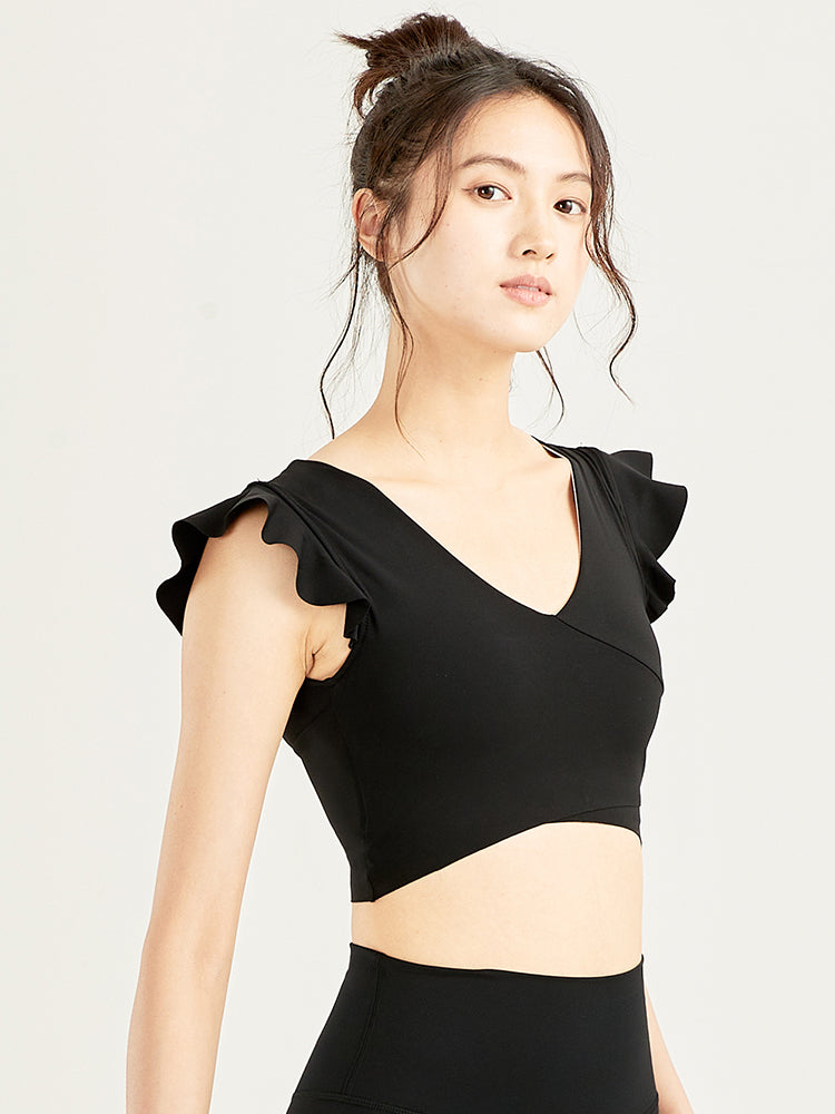 • そで口にの可愛いフリルと胸元のエレガントなアシンメトリーデザインで女性らしくお洒落なイメージを演出。