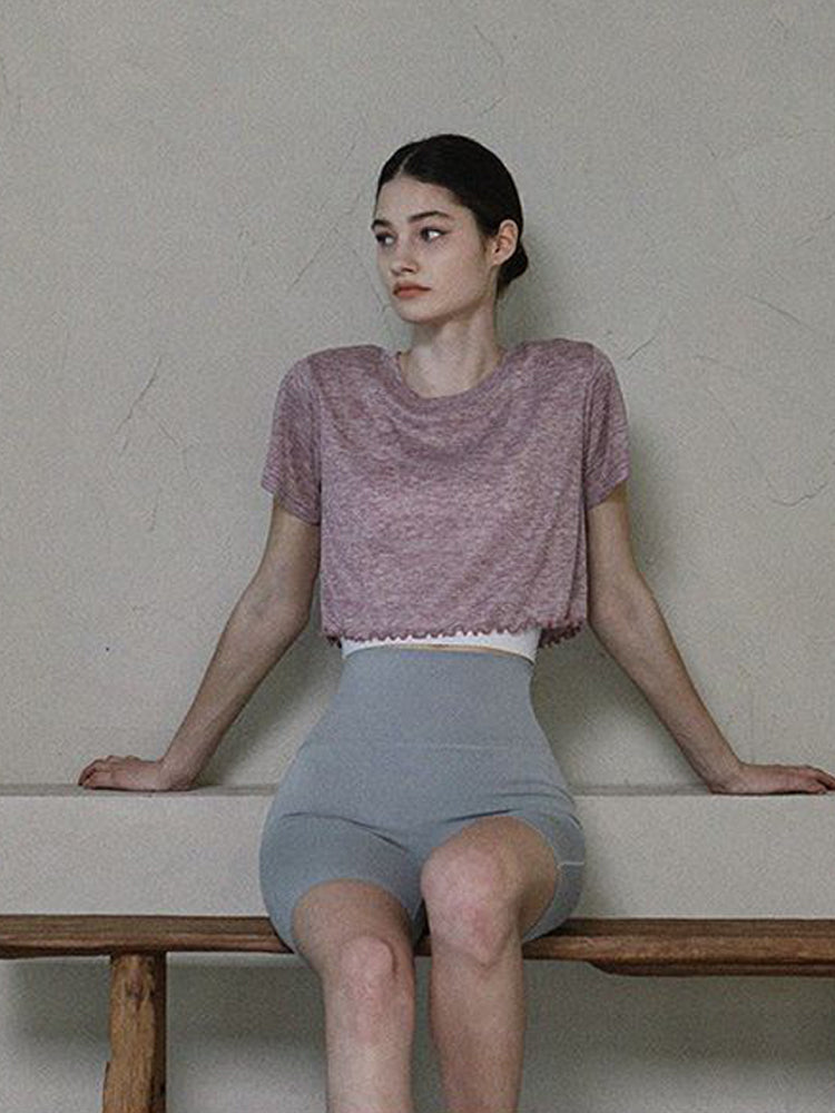 清涼感あふれるフリル裾のデザインがワンポイント、ショート丈のデザインでウエストラインをきれいに魅せて、スポーツブラとの組み合わせがおすすめです