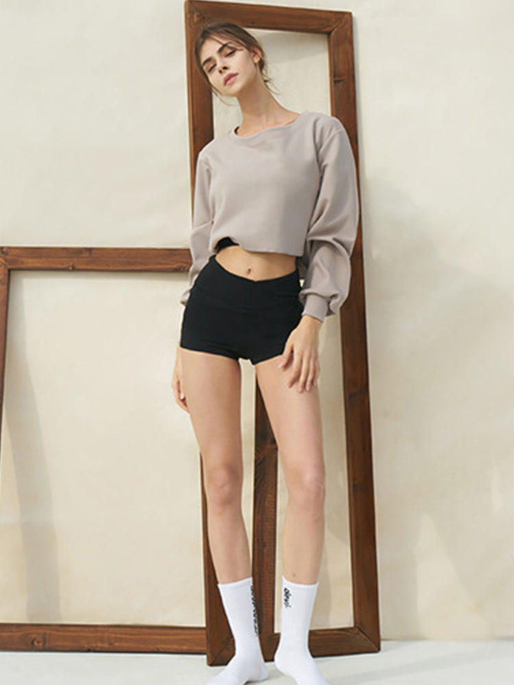 • ショート丈のデザインでウエストラインをきれいに魅せて、スポーツブラとの組み合わせがおすすめです
