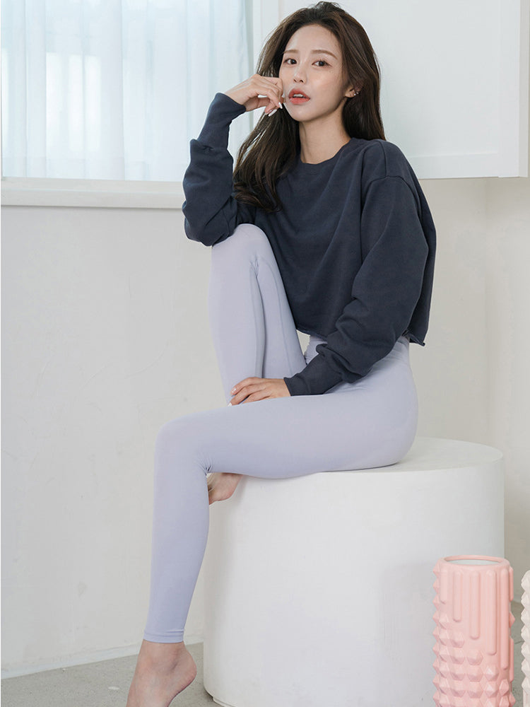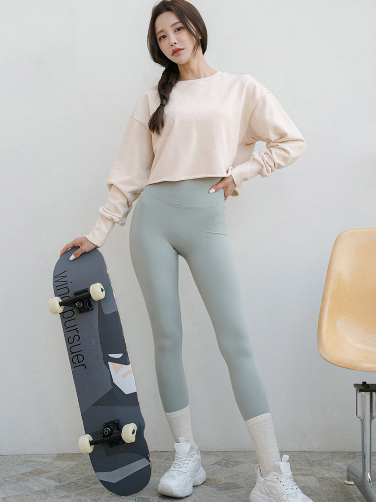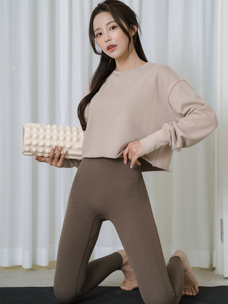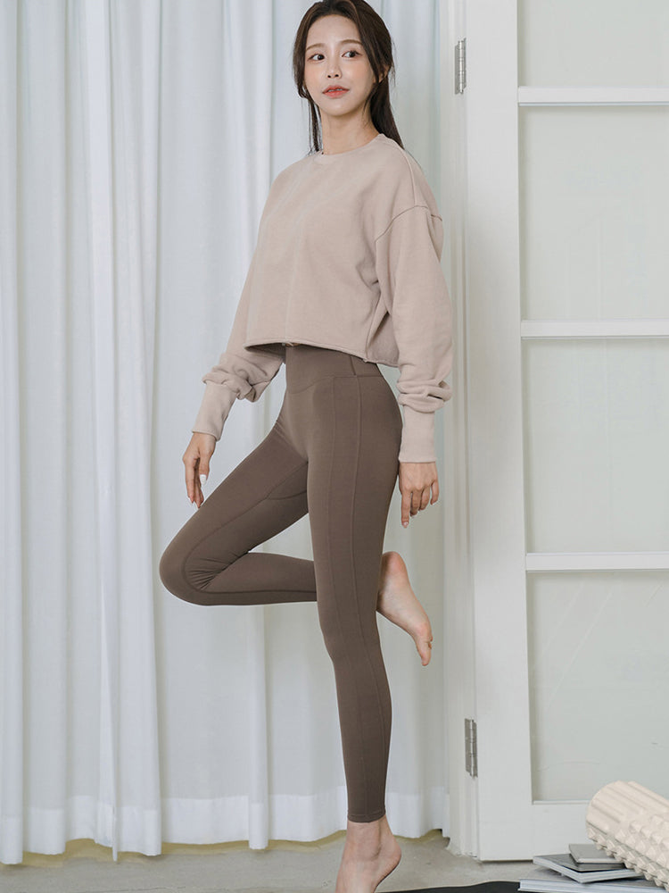 ややワイドなシルエットで様々なシルエットのボトムスとも相性が良く、落ち感のあるヨガレギンスとの華やかなスタイリングがおすすめです
