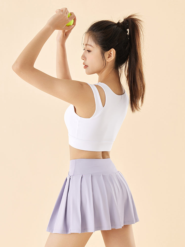 • 洗練された立体裁断が特徴のスポーツブラ。フロントチャック付きのデザインも脱ぎやすく便利です