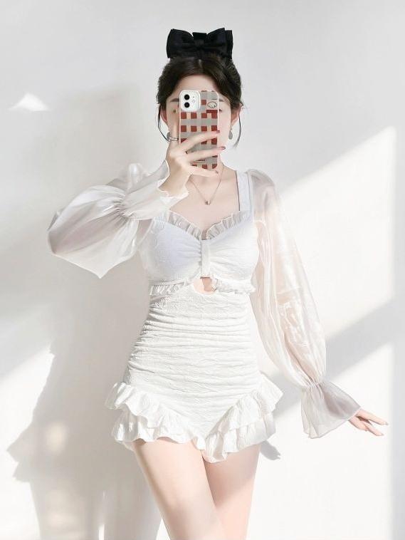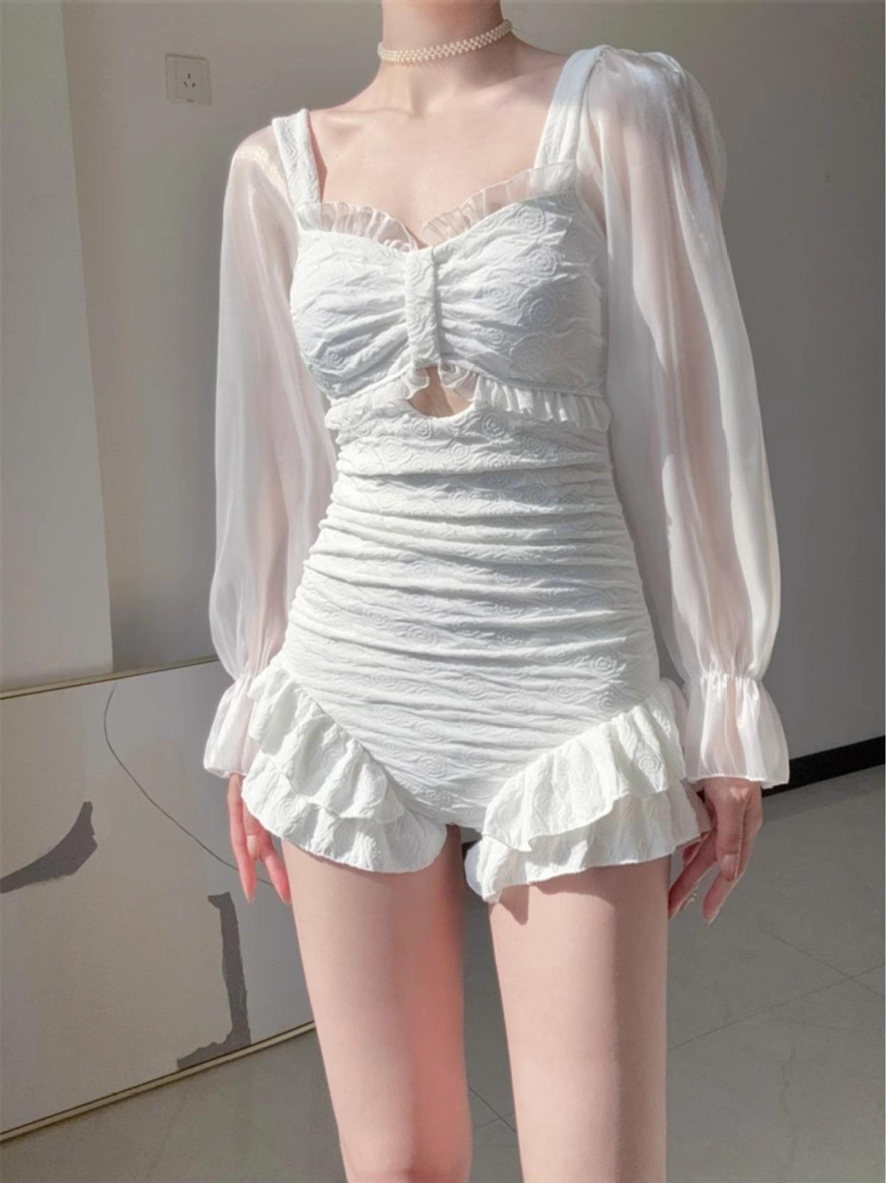 • シアーな透け感の袖は、エレガントなデザインなので、大人の女性の水着として最適です