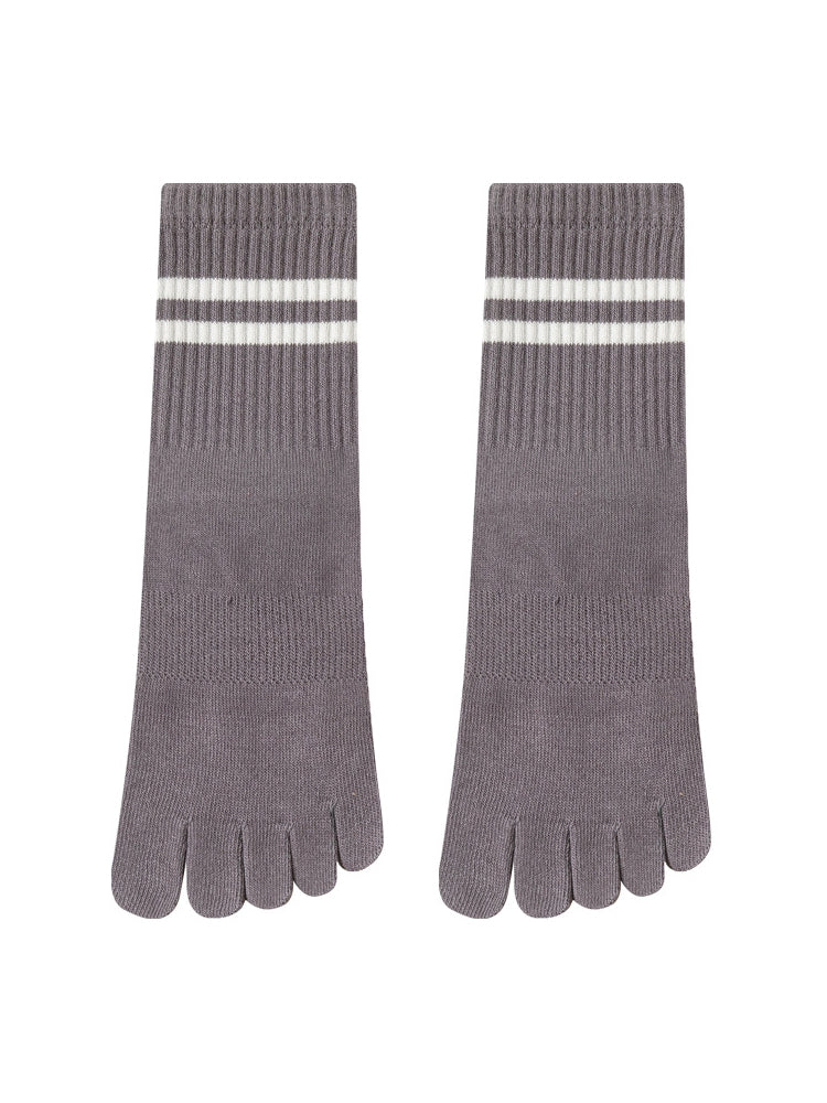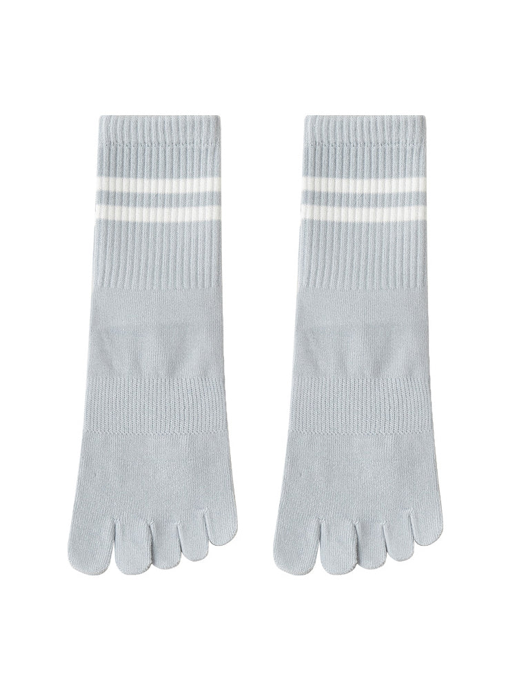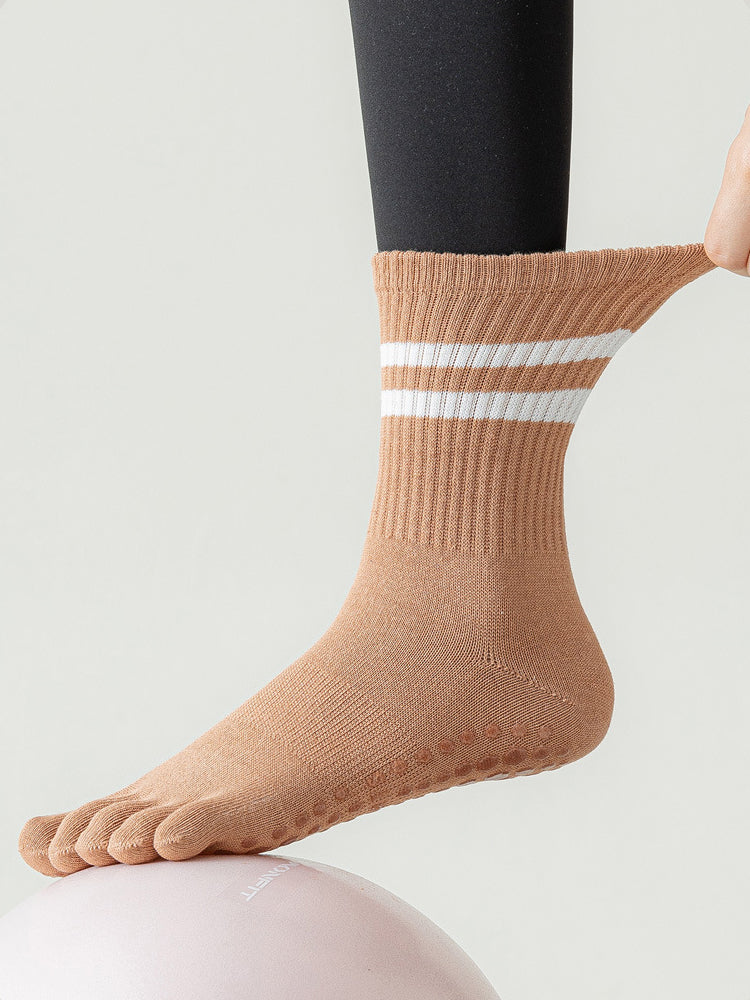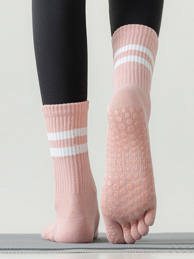 ボーダー柄 5本指滑り止め ミッドカーフ丈ヨガソックス