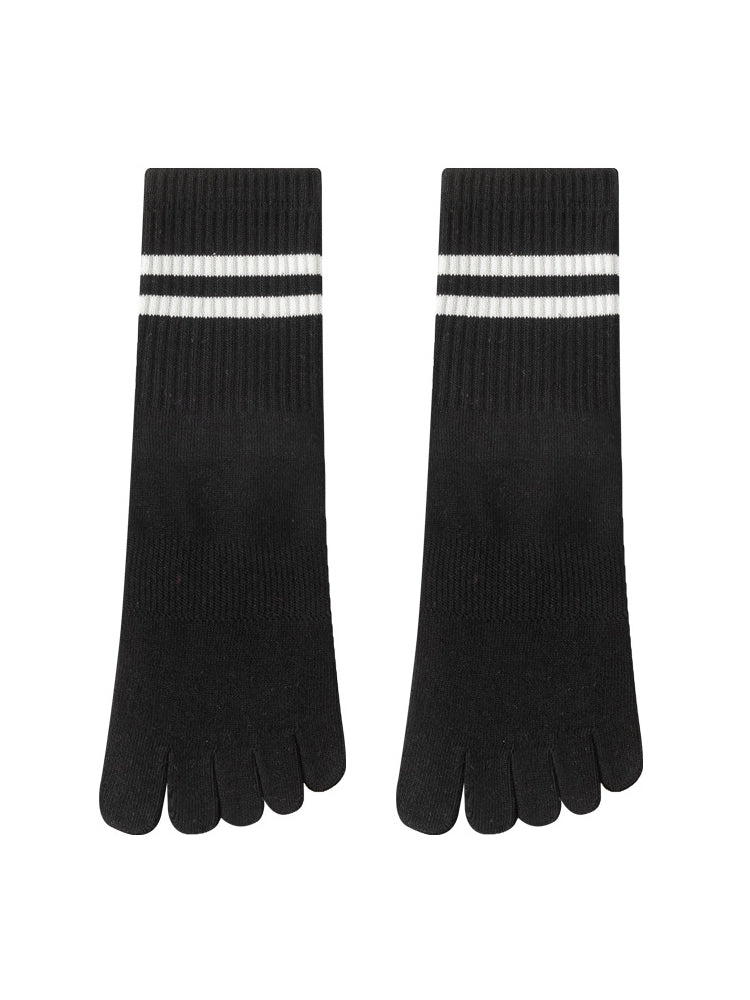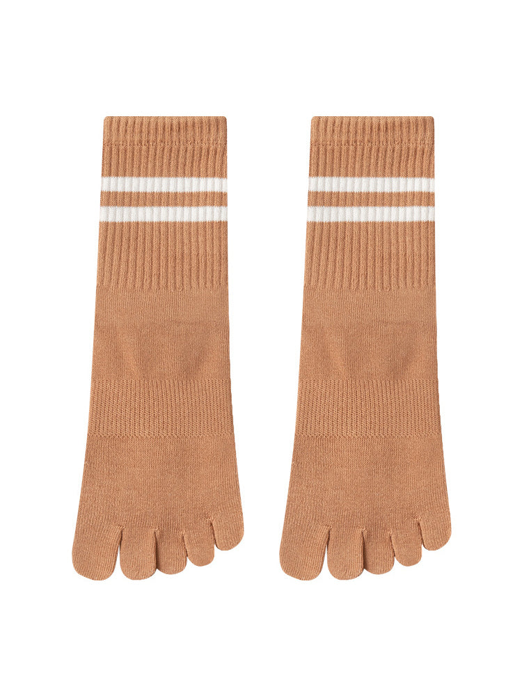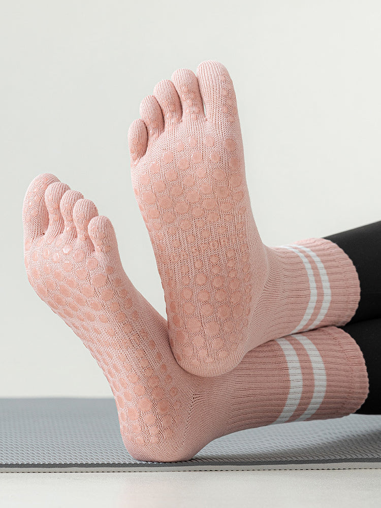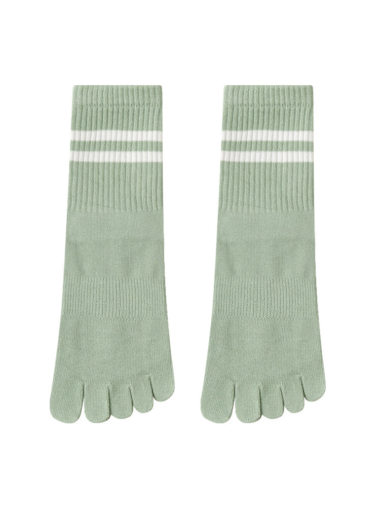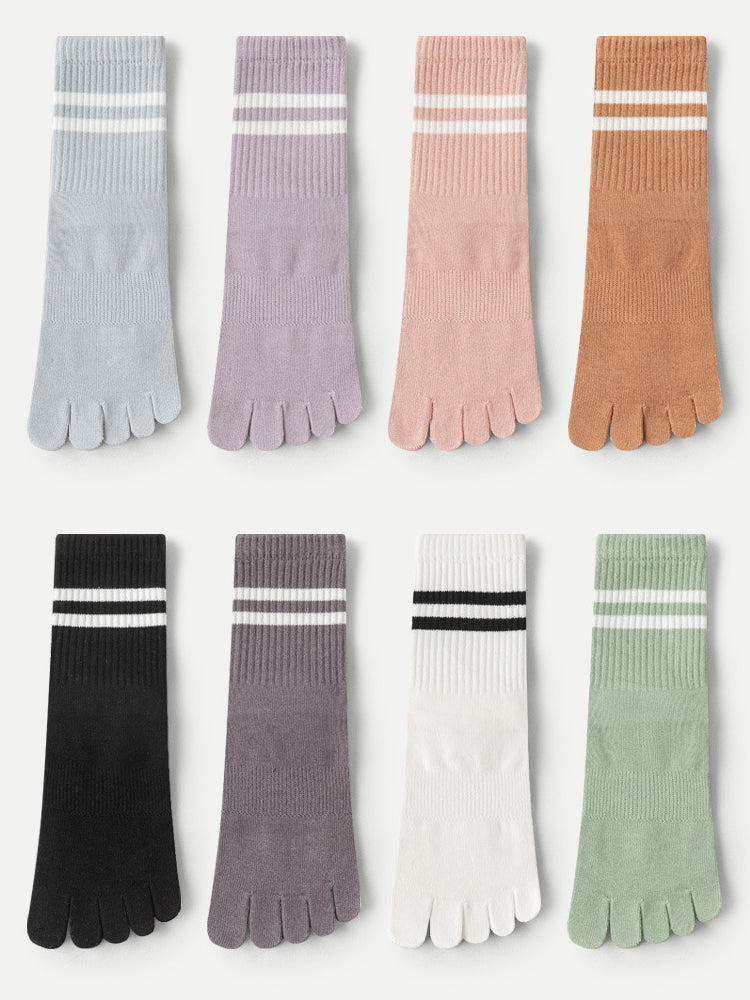 ボーダー柄 5本指滑り止め ミッドカーフ丈ヨガソックス